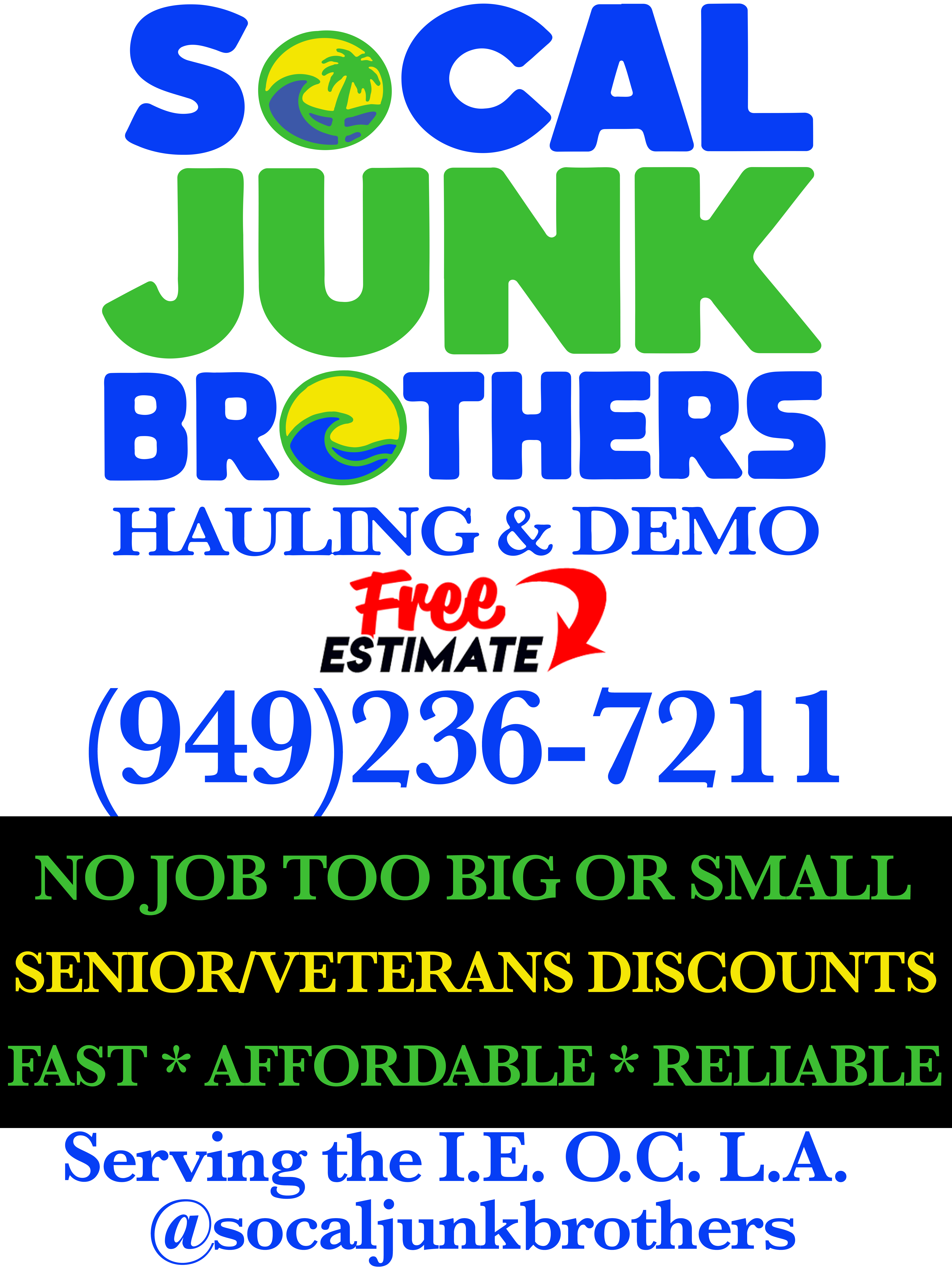 So Cal Junk Brothers provides junk removal and clean up to residential and commercial customers. We remove almost anything – from single items to entire clean-outs. Business Bulk Trash Removal, Light Demo Work, Patio Demo, Spa Demo, Shed Demo, Vinyl and Wood Fence Removal, etc.